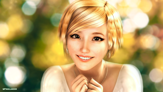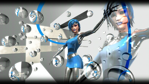 Can say the same looking at the background, a truly dazzling display of lights that even the makers of Tron would applaud you for. Its got that neat code look to it almost like The Matrix had and nice mix of the black with the glowing blue of the text, it suits well with both her and just another to draw your focus into, well done.