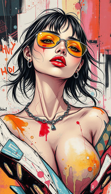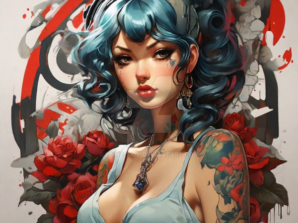 #cartoon #portrait #beauty #arab #arabic #beautiful #big_boobs #cap #girl #model #painting #sexy #sunglasses #tattoos #woman #art