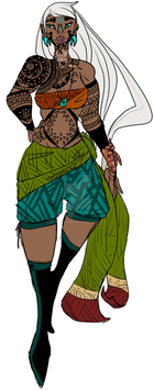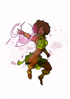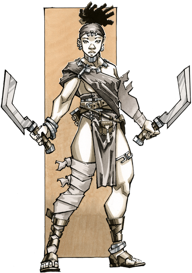 To keep a long back-story short, Mother of Misfortune is a mythology set on an alternate Earth that has been "reborn" so to speak after societal collapse and near destruction. New creeds and cultures have been created around a caste of "divine beings" responsible for its rebirth called the Omni and the first major war since their appearance is currently taking place with the various tribes and clans that serve the High Omni invading the states and regions that idolize the bastard/lesser Omni (or no Omni at all). Aziza is a warrior priestess turned warlord from a river tribe that was pulled in to the war but she has left the battle on a personal quest in to enemy territories to save her son who was cursed upon birth. From there she comes in to conflict with enemy factions, mercenaries, former comrades, supernatural creatures created by the Omni called Demi, and the Omni themselves.