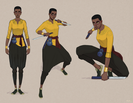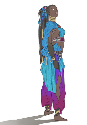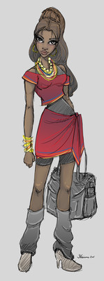 The ones that don't make it really aren't all that good. haha This one in particular I liked for it's consistency and how it came together overall. My designs are usually based around fashion and simply adding fantastical elements to it. I try to have an initial idea when I go in to the patterns. On her main outfit I was thinking water and flowers to combat the warm feel of the design. The scarf thing had simpler lines and shapes as to not have too much information on her clothes and to make her easier to redraw. And yeah, that's her hair through the hat. Ironically, i wish I never gave her the hat and instead had more of her hair showing or at least gave her a different hat.