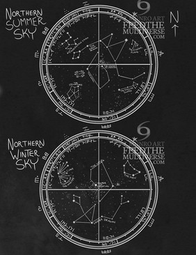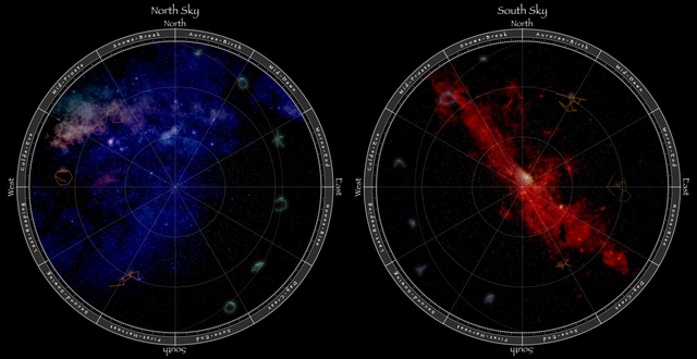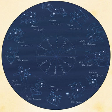 Constellations for my Guardians of Anuur trilogy (world map here ). Made in Photoshop.This "map" is incomplete. It's colour coded, though, so you can see what each of the different nations see in the night sky. (I have a few more ideas, including some from my dad and a friend, that I just haven't had time to add yet.)