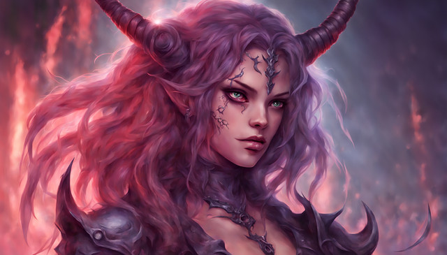 #digitalart #characterdesign #portrait #beauty #videogamefanart #warrior #magic #fantasyart #fantasycharacter #demongirl #ai #dreamup #ai_art