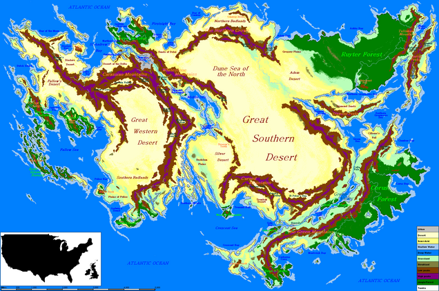 On full size, the white grid lines are spaced at 100 mile intervals. Big country.