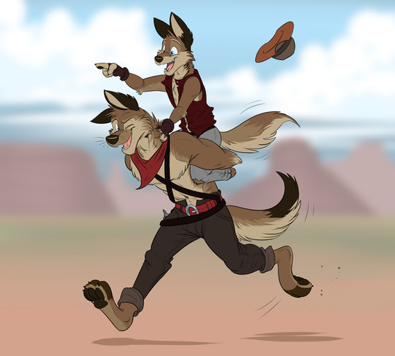 Commission artwork byΒ Louwuis Β for me.Here's a scene of Hez and Jos enjoying a day of fun at race. Or possibly a rodeo, I'm not sure