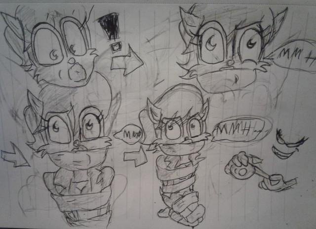 Sorry about that my name is freeze The penguin. And we (the freedom fighters) have noticed you have been captured a lot, itβs not your falt dark the blackabis (my brothers O.C.) has recruited every villain in the world. He feeds of fear, and evil. So ima untie you now *unties* ya know I liked your older shirt (the one from squirm all you want but still like your work)