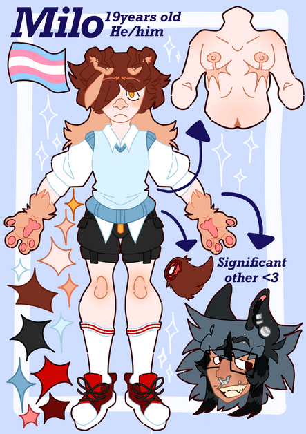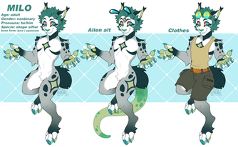 Here’s my oc Milo’s ref! Heres his artfight page (for more info): artfight.net/character/3113772…Related content