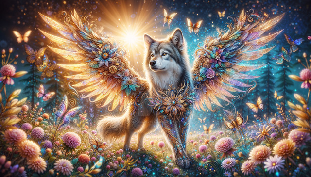 #digitalart #fantasyart #angel #animal #animalart #heaven #digitalpainting #wallpaper #surreal #dog #clouds #flowers #moon #spirit #winged #wolf