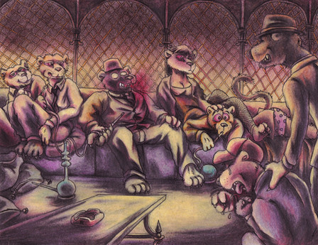 Another great drawing the shading and colours you choose work really well. it's like demented disney.