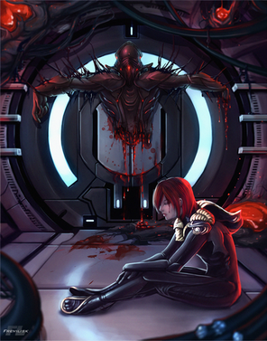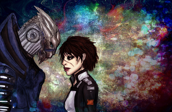 Femshep/Legion. Still love this pairing.I used a game screenshot for the background. It's an observation deck, isn't it?