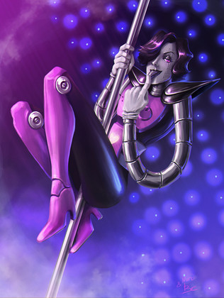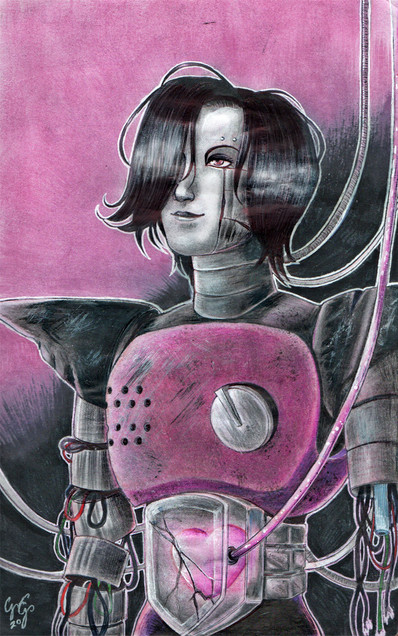 Oh that looks really cool. I love the colours, the grass looks nice and the design of the robot is really awesome. I love her face & hair. Beautiful. The lighting and the colouring is great!