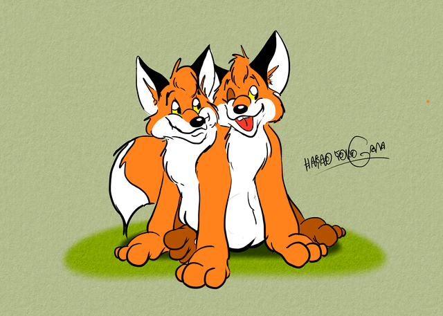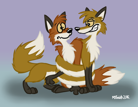 Oh wow! I like it! It's like the fox on the left is saying, "Get your butt off my face!" or "I'll kiss your a** goodbye!" Nice work!