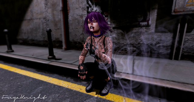#badass #bikergirl #femboy #hat #hideout #leatherboots #rundown #smoking #sunglasses #roundsunglasses #lookingatphone #smoothcriminals