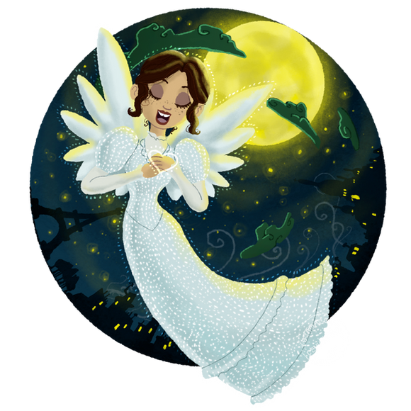 The messenger goddess, rendered entirely in glowing light-type brushes.Related content