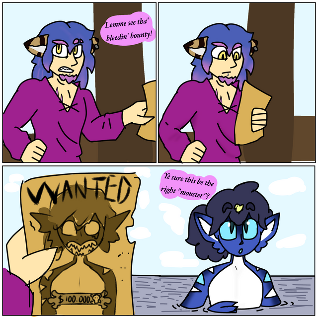 While hanging out on a innocent barrel. Looking like a good spot to perch and watch everyone around her. One of the pirate ship members get a little careless as they bump into it. With some still kind of learning to be more mindful, as well as respect her. Sending her tumbling down into it. Luckily she had someone notice. That being Markas who luckily witnessed the incident.