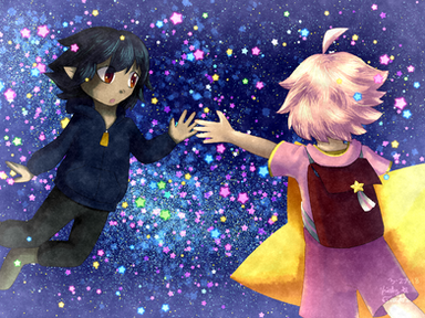 Just a little something i found lying around and decided to color it. ^^ little silly thing i drew of Nakia trying to catch some stars. While Owen's making sure that she won't fall off his head while doing so.
