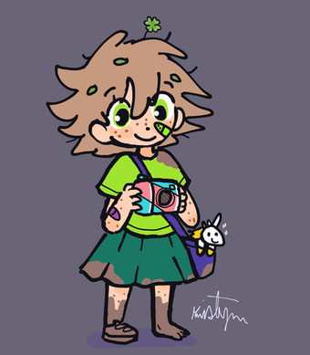 Felt like it was about time i made a decent one for my little shamrock girl Clover! My shutterbug loving but clumsy OC. Who sometimes finds herself in unlucky situations from tripping and winding up with a banana peel on her head, dropping drink glasses, etc. But she tries her best not to let those moments get to her and pushes forward. And even if she does get a scrape on the knee or something she's never got into any serious accidents before so she's got that luck going for her, and making good friends helps too.