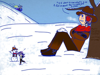 "Haha! You okay there?"Moving around in snow can be tricky when there's a lot of it. Good thing Nole's a good sport about it, and has a nice friend like Kelan to help her out.