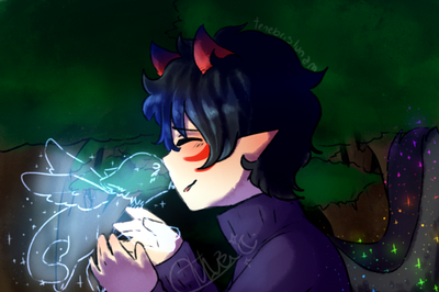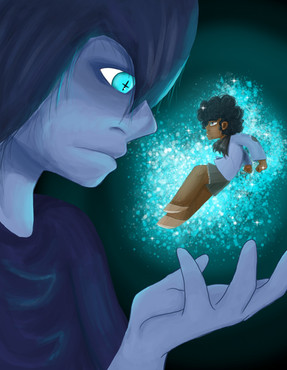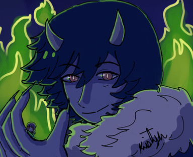 I don't know where this idea came from or what's going on really. But randomly decided that this would be a cool image that i wanted to get out of my head. Featuring Nole and Boris.Where Nole is either in the middle of summoning him for the first time or...performing a spell for some reason while Boris looms behind her or something.