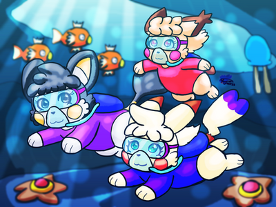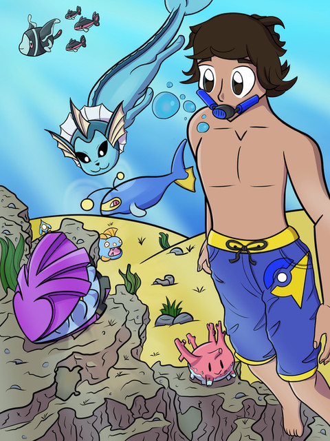 I can imagine him swimming through a 2d area with a Gyrados just behind him while he swims collecting coins X3.