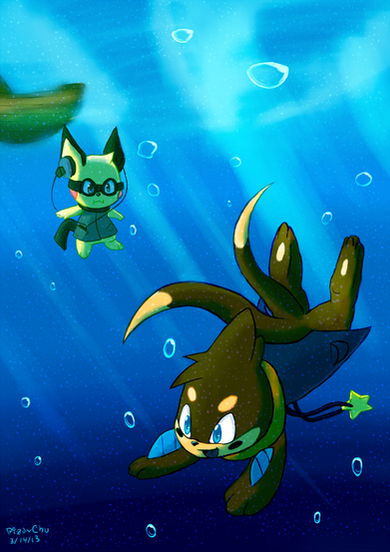 Arpeggio is swimming around and what does he find in the water? A clamperl! He hasn't ever seen one up close, but he's running out of air, so he's going to take it to the surface to get a better look.Might take it to the museum afterwards.