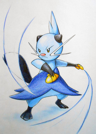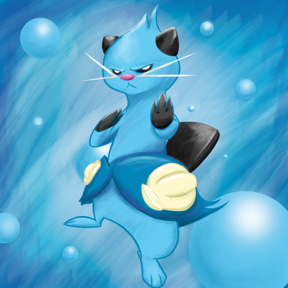 I took some liberties with Dewott's original design, such as removing the whiskers and allowing the blue "puff pants" to extend all the way down and wrap around its legs.Seriously one of my favorite water starters, but I will admit that I enjoy Dewott's design more than Samurott's.