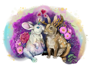 #flowers #gay #lesbians #moon #rabbits #animalart #digitalart #digitalpainting #fanart #jackalope #rabbitonthemoon