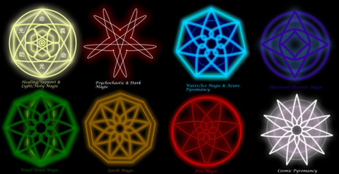 After posting Daisuke's sheet, I guess it can't hurt to post a sheet of his Summon sigils. I managed to grab these sigils from the game Elsword, as well as the lightning and flame insignia. They proved to be quite useful; the remaining insignias I was able to grab off from random searches of google images. Recolored, edited and add a glow to them and they've become beautiful insignias. I'm sharing these for all to use. Perhaps you'll find uses for them other than with just Daisuke?
