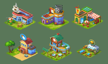 A couple o' buildings I did for Booyah's iOS game "No Zombies Allowed!"Check out more art from the game on 's and 's pages!