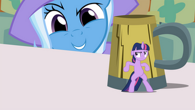 *A purple flash, and Trixie finds herself trapped in a jar, looking out at a gigantic Twilight smirking devilishly at her and winking*