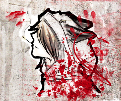 Is this Craig? I can guess since...I'll say, no one knows what really goes on inside his mind, and why he hides. I can only guess he's trying far too hard to be "plain and boring" trying to hard to forget something... that isn't "normal" for kids. And I'm not sure if it was gruesome and bloody or he thinks the future might be... it can represent either one.
