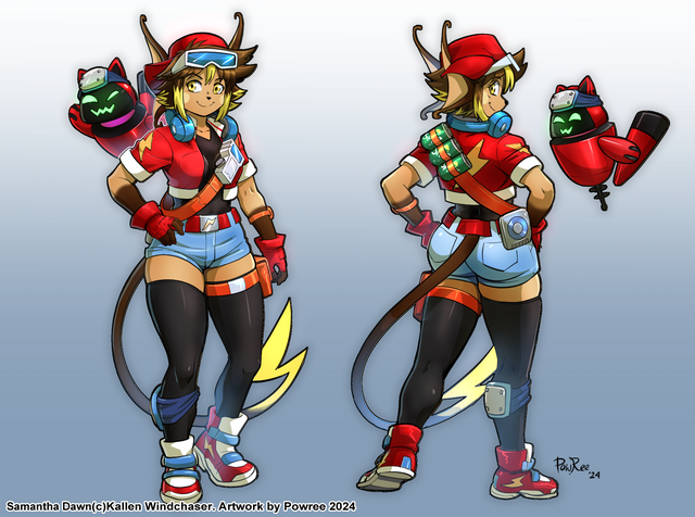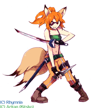 Hey, she looks like a teenager anthro! My only critic is that her weapon should not be placed in parallel with her leg because its distracts the eye. Very good one!