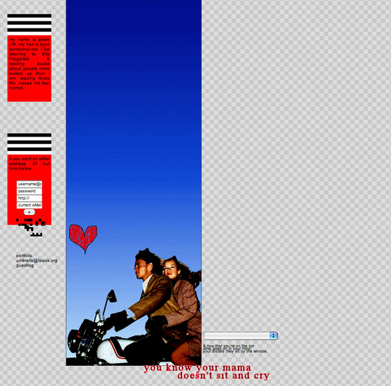 Layout made for previously owned personal website; 2005.Design inspired by Radiohead lyrics.