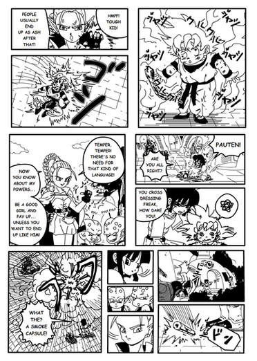 Lol, that's so funny!! Hey, I just thought of something, where are Trunks and Bra the whole time?