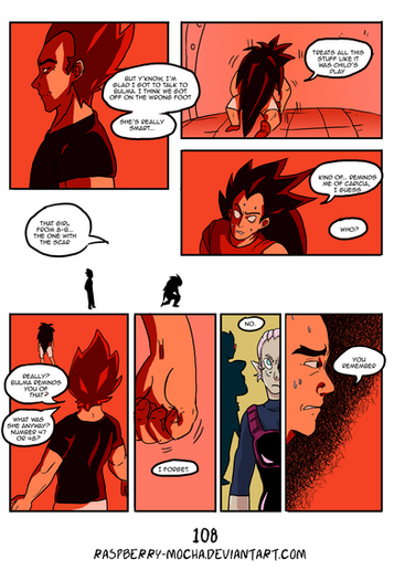 Still loving this strip. Your art seems to be improving too. I also like the concept of Raditz being a good mechanic. Other fanfic writers and artists have explored it and it seems to work for me. In the original series, he seemed to rely on his scouter a bit too much...perhaps the mechanic in him? He probably had to compensate for his lack of power when compared to Nappa and Vegeta to make himself useful. Since Saiyans love a challenge....figuring out a puzzle or a problem and enjoying it would fit into it, as would mechanical ability. I could see Raditz and Gohan being alike in a way...they could both enjoy the challenge of figuring out a puzzle....and I'm rambling now. Carry on.