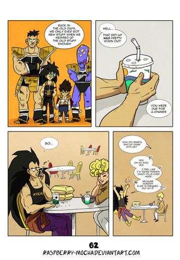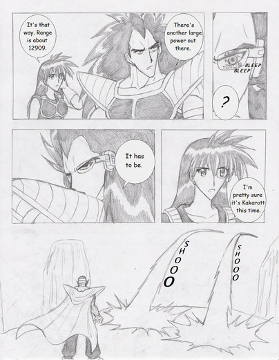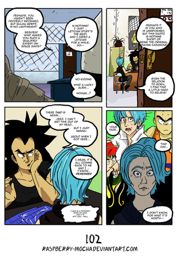 Vegeta is really smart, well like we didn't know that already. He had a lot of time to study ships in his early life. Fun Raditz is so impressed with Bulma, he should only know what stuff she can make. (Just me or does Radizt look a little like Vegeta in the 2nd panel? I think I always thought Vegeta and Raditz looked more like brothers, must be the eyes).