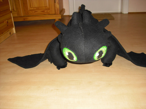He is so cute! Good job! I made a Toothless from Spirit of America's pattern. I made mine w/a sewing machine. He was still quite a bit of work though. I've posted a link to mine. I would also be more than happy to make a Toothless, for anybody out there that wanted one, and didn't want to attempt making one for themselves.