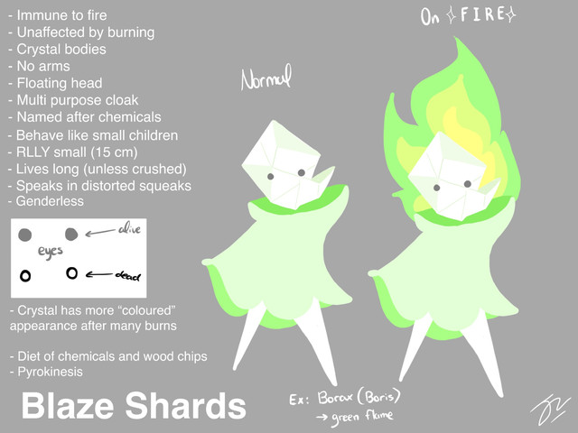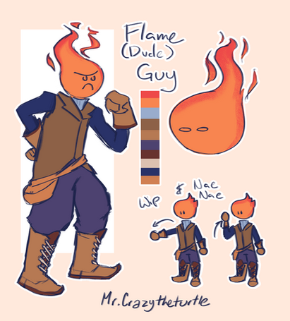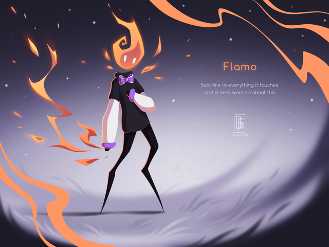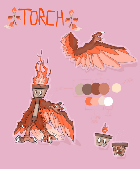 "Boom Boom sometimes referred to as The Firey Rascal is a rather troublesome critter. It can be found wandering around volcanoes and is usually the cause for those little explosions when the lava bubbles. It eats explosives as its diet consists of nitroglycerin, gunpowder and TNT. Boom Boom's head and tail can get larger depending on how much it has eaten and he can explode at will leaving behind his body and wick. Not to worry though because even with no head Boom Boom can walk around as if he was alive and light himself again. Boom Boom usually leaves a trail of ashes behind him after he has exploded and continues to wander around with just his body. He enjoys causing mischief in caves and is most attracted to locations where miners are digging for expensive minerals. Its swirly eyes are a good indication for when it is about to explode, the faster it goes, the closer it is to going BOOM. Keep an eye out for him because he'll cause trouble when you least suspect it."