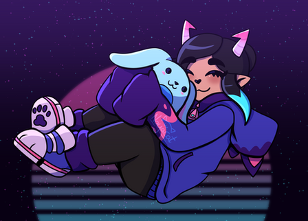 Your artstyle is so clean and cute, this piece feels very cozy !! The little rainbow tail is such a nice touch as well, great job !!