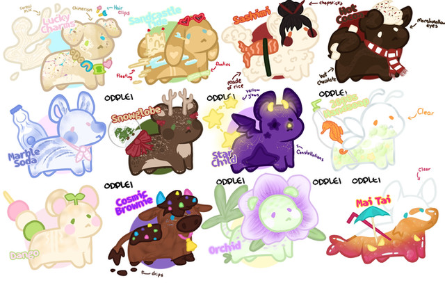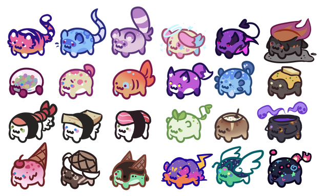 Digi , Spectrum , Hue , Boomboom(NEW) , Fortune , Flowerdrop , Bundrop , Sunlop , Stellation , Tacobell , Starbright , Shuttle(NEW) , Jawbreaker , Donusaur(NEW) , Pixel(NEW) , Ectoplasnya