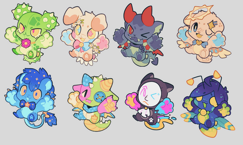 You have such unique designs, I love them <3 I've wanted to do something like this too!! Just a little sheet of a bunch of my OCs aaa they're so cute and visually pleasing to look at all together ;;