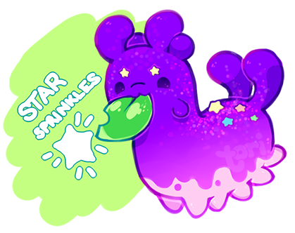 Finalized the mascot for Lotsoflotls ! His name is Squish and his subject is "Starry purple slime"! I also gave him a color swap mutation so he can make his colors lighter anytime he wants ^7^