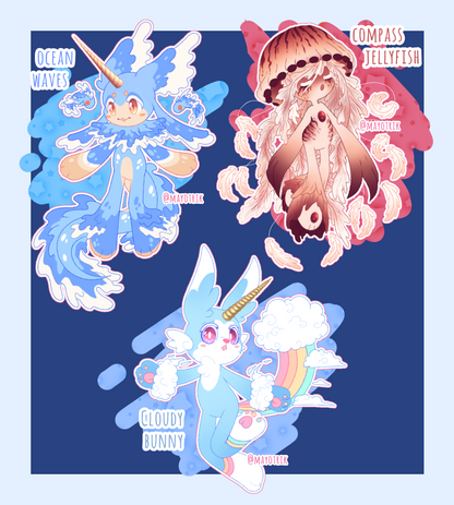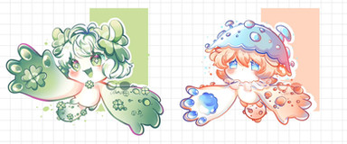 Heeey! I’m back with another adoptable set for you guys! I started these back in like...August..and didn’t finish them until now LOL! I’m really reallllly happy with them and I hope you guys don’t mind the time they’re being posted...(It’s literally almost Halloween shchsxnxjzjsn TWT;; )