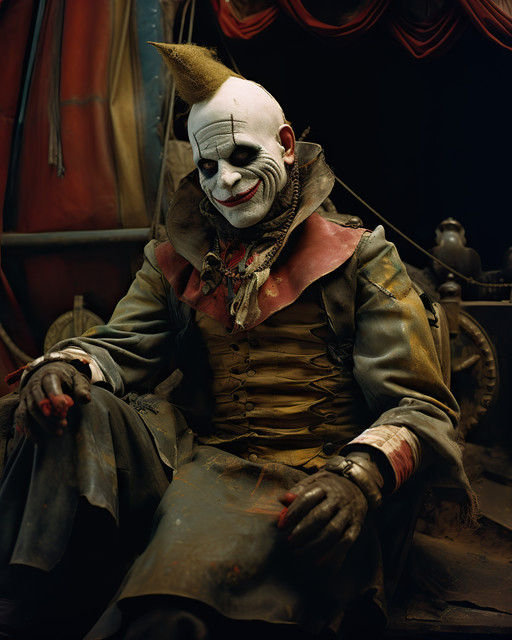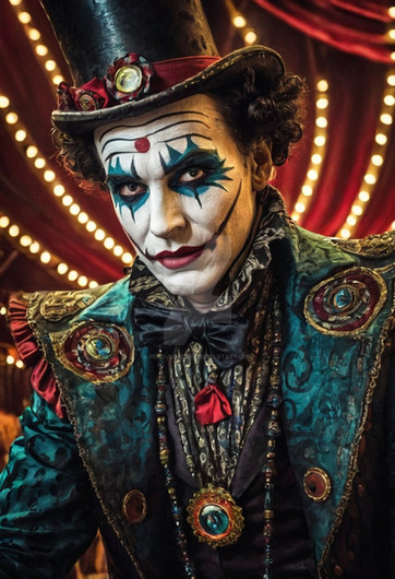 Generated with Midjourney : A jaw-dropping photograph presents an extraordinary blend of a post-apocalyptic wasteland and a vibrant, carnival-inspired wonderland. The central character, a mysterious and alluring ringmaster, stands amid the chaos, commanding an eclectic troupe of performers who are part-human, part-machine. In the background, rusted, abandoned machinery contrasts with the dazzling colors and ornate decorations of the circus tents and attractions. The ringmaster's enigmatic gaze holds the viewer's attention, inviting them to explore this surreal, captivating world where the lines between fantasy and reality are blurred, and nothing is as it seems.Related content