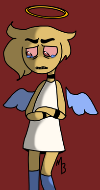 Whilst in heaven, Dakota has an insane crush on a new arrival named Jordan Banks. Despite the language barrier confusing Jordan, Dakota still wants to communicate with him. When Jordan spotted Dakota following him, she wanted to impress him. Again, Jordan was confused by the language barrier, so Dakota had to show him. Dakota hunts down a fish in heaven and eats it as is. This repulsed Jordan as he watches her chew the fish and blood spatters on her face and sash. Dakota offers some to Jordan, as a symbol of her offer to dinner. What she was really telling him was I love you. But, Jordan rejected. He just backs away and flies away from her, again. Rather unfazed by Jordan's rejection, Dakota doesn't give up and follows after Jordan. She had to have him no matter how much the British brat turns her down.More to come! It will get good soon, I swear! ^^