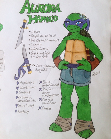 I completely agree, especially the hair part! I still enjoy seeing peopleβs OCs and what concepts they have created them with, but when it came to my own, a turtle named Saria, I wanted to do something different. So she has no hair, no boobs, but I did give her curves because she has larger hips compared to her shoulders and rib cage. I also tried to draw her slimmer and more lithe compared to the turtle brothers. It was my first mutant turtle concept so I may make changes to her in the future.Β