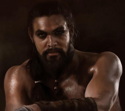 A digital painting of Jason Momoa portraying Kal Drogo from HBO's Game of Throne's.Related content