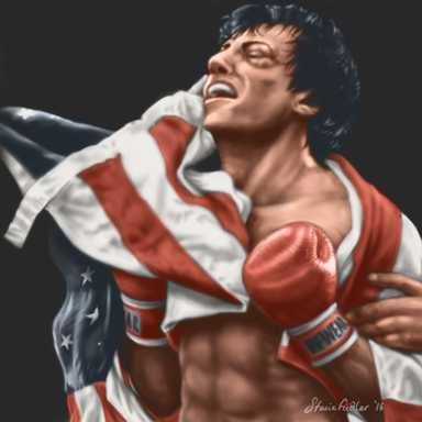 A digital painting of Sylvester Stallone as the one and only Rocky Balboa.This is my first finished piece using a different brush style.