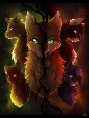 Yay! Finally finished ^-^. I worked really hard on this one.I used this drawing for the background, mostly because I spent a whole week on this and I didn't feel like redrawing Tigerstar's eyes.