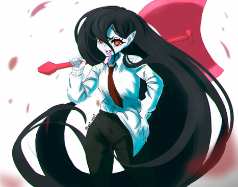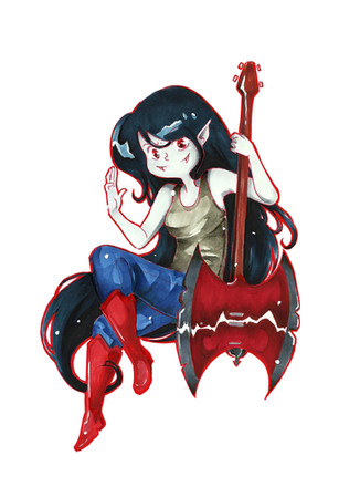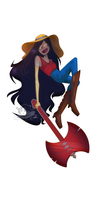 watched all 11 seasons of adventure time. fully enjoyed all the bubbline scenesi love marcys outfits but i didn't rlly do this one justice.it looks like she's eating her axe