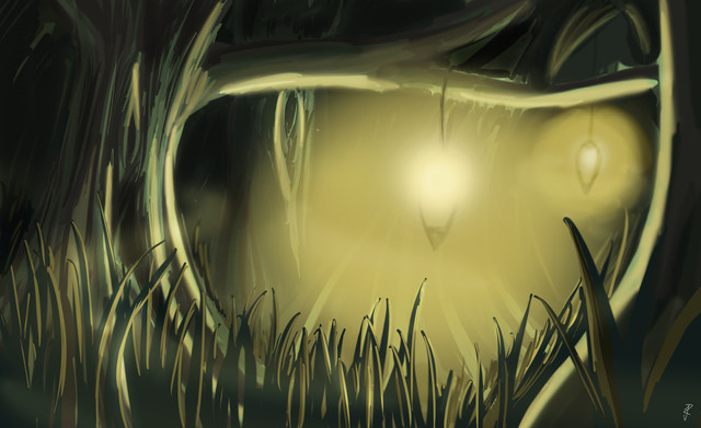 I really love this! I like the creepy mist-like vibe you conveyed. I love how the lantern really seems to glow and I really love the detail in the tree.